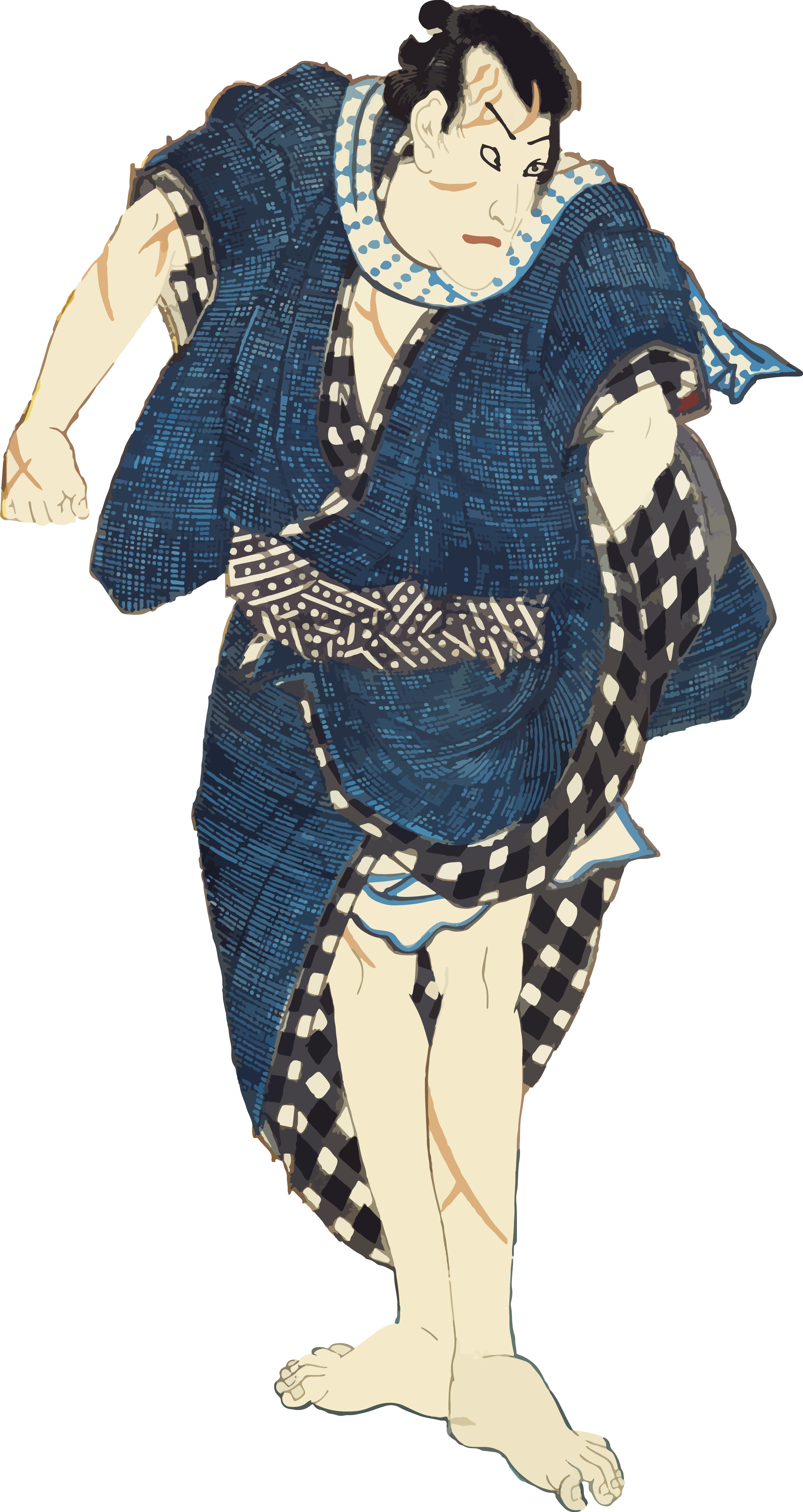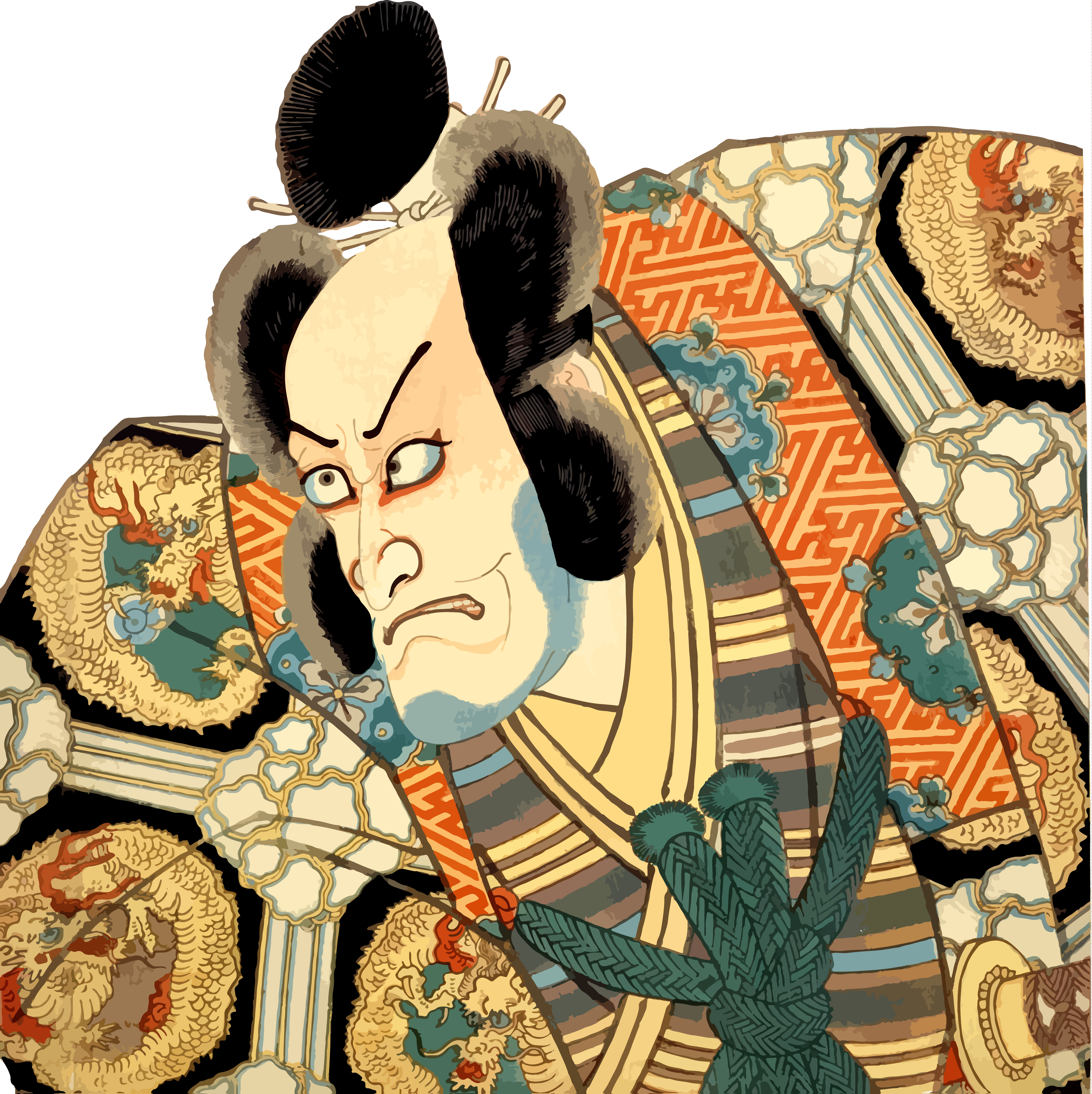 Japanese Ukiyo-e Design T-shirt Kabuki Actor Tarozaemon White Hair 5.6oz Mens