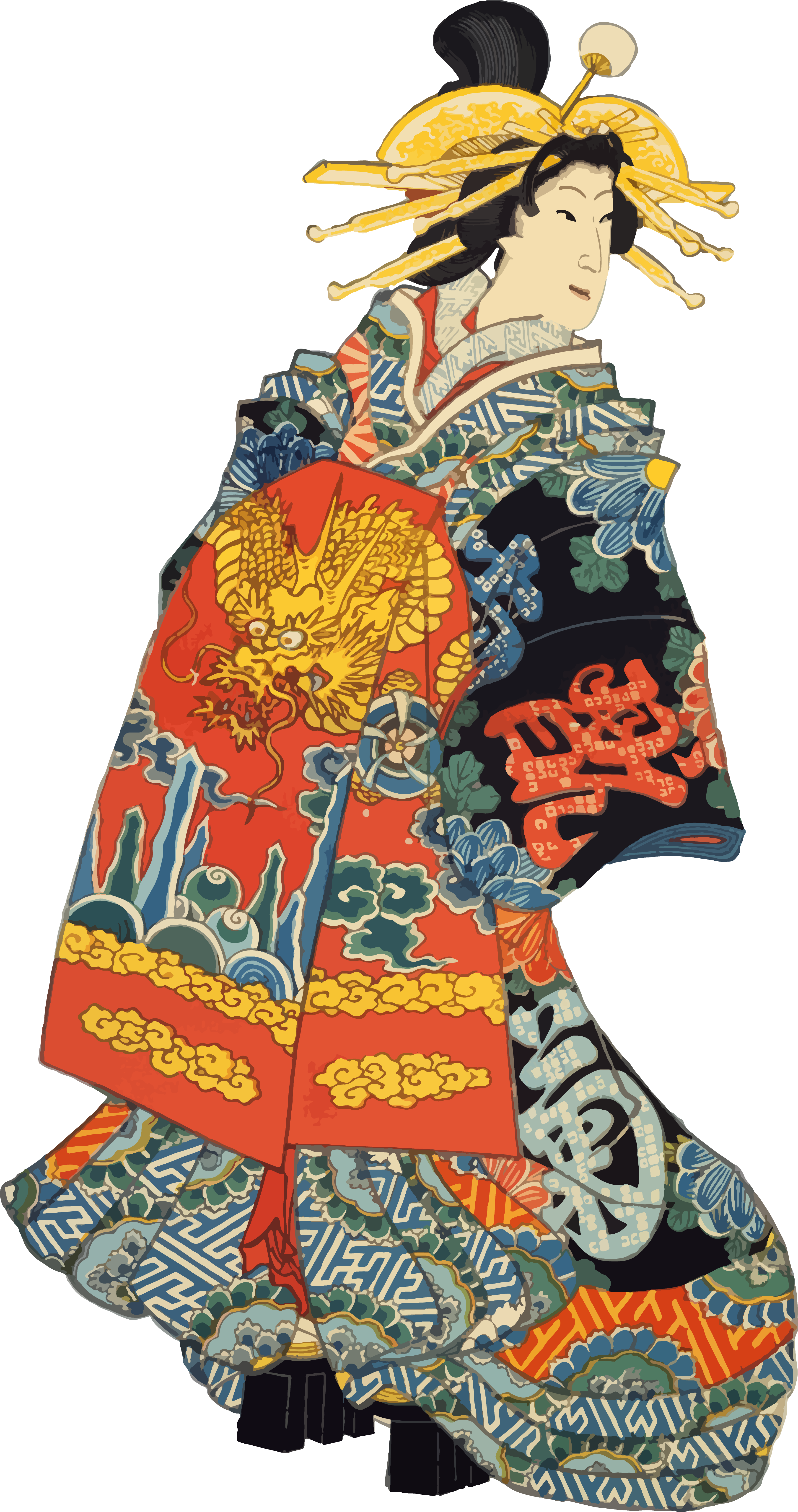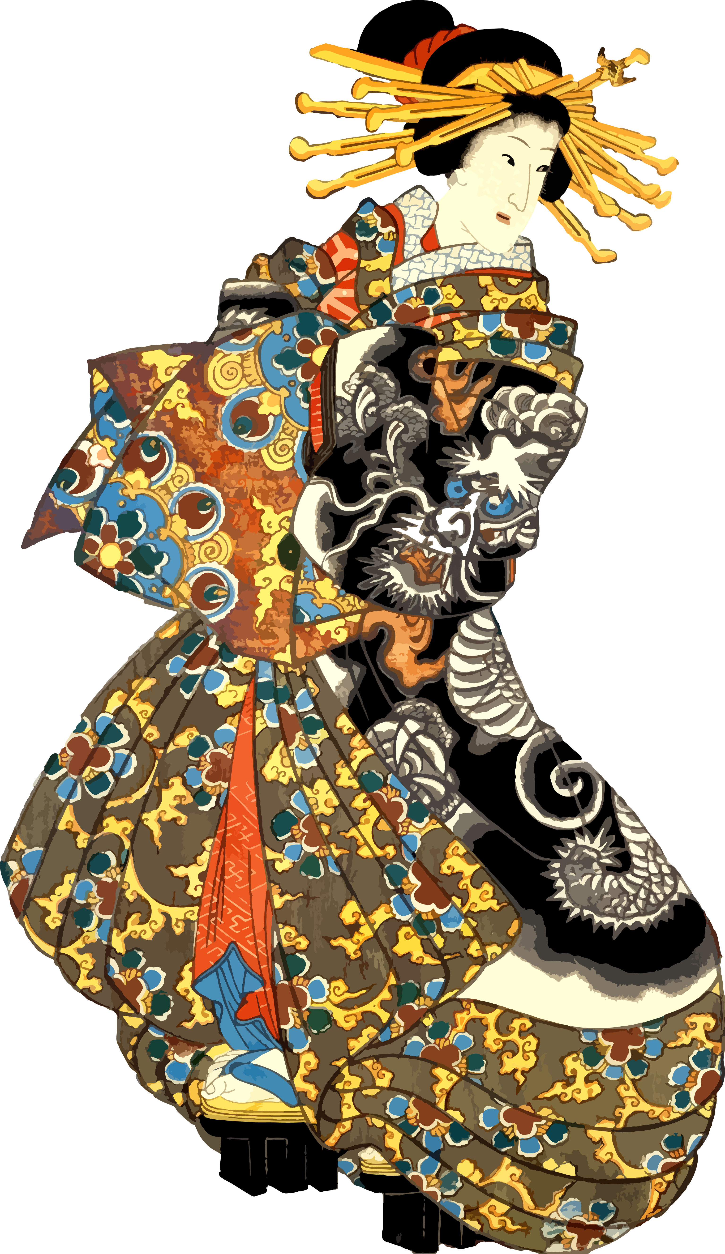 Japanese Ukiyo-e Design T-shirt Geisha Woman Holding a Cat 5.6oz Mens