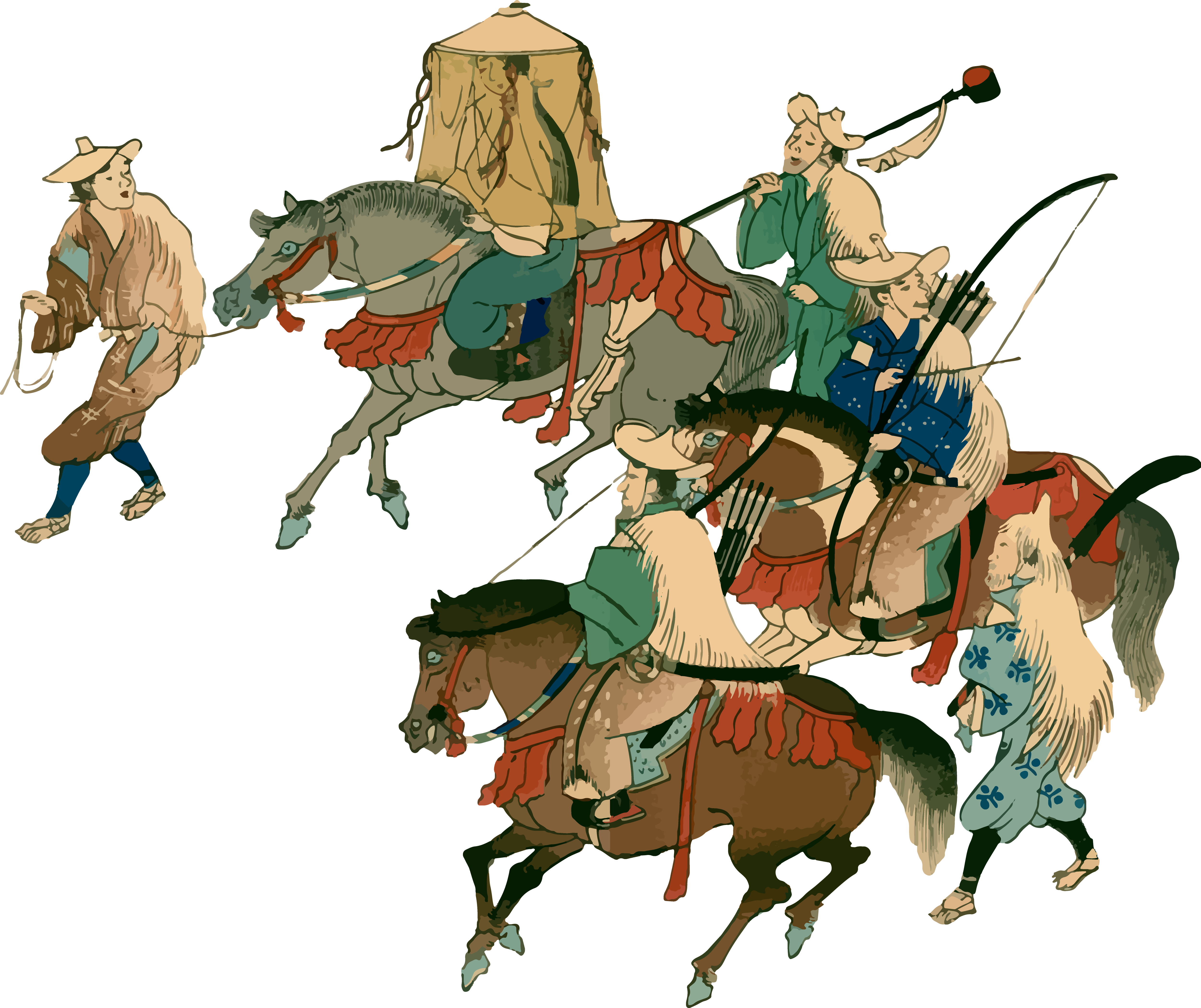 Japanese Ukiyo-e Design T-shirt White Horse with Red Harness & Kanji Uma