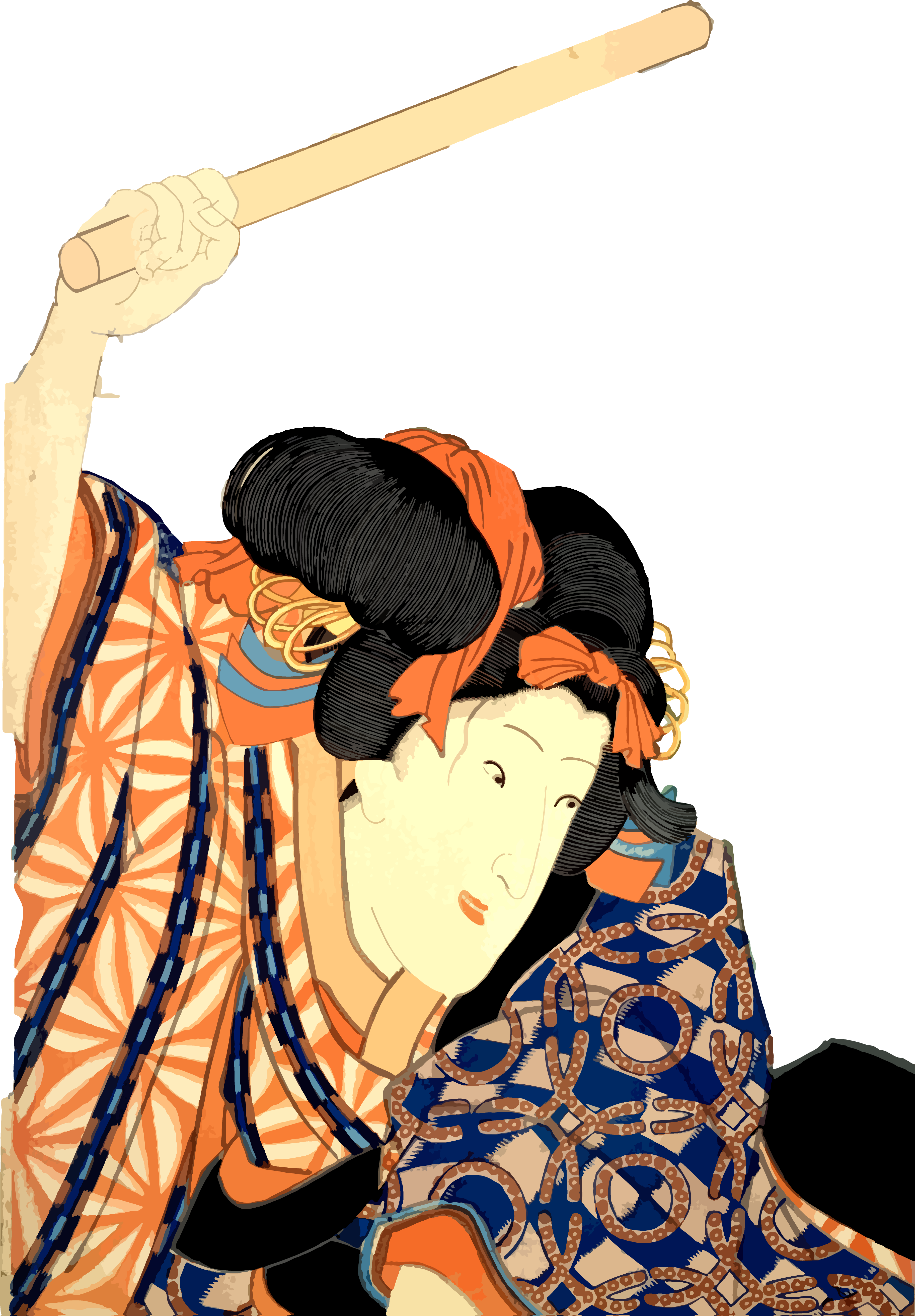 Japanese Ukiyo-e Design T-shirt Kabuki Actor with an Umbrella 5.6oz Mens